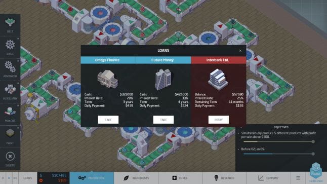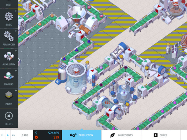 The game managed to recoup during that beta process, and that’s largely due to its solid management sim mechanics. Big Pharma requires players to master the process of transforming core ingredients into practical and profitable medical recipes, balancing side-effects and cures, and unlocking more advanced equipment and materials. You also have to manage the physical production lines, which is a puzzle in itself that requires planning, foresight, and careful color coding to prevent your many processes from blurring into incoherence.