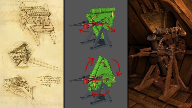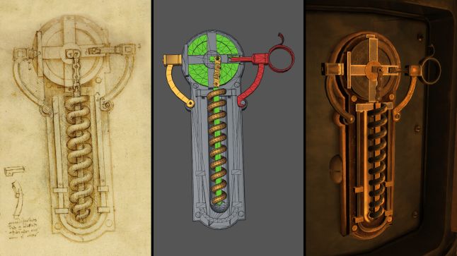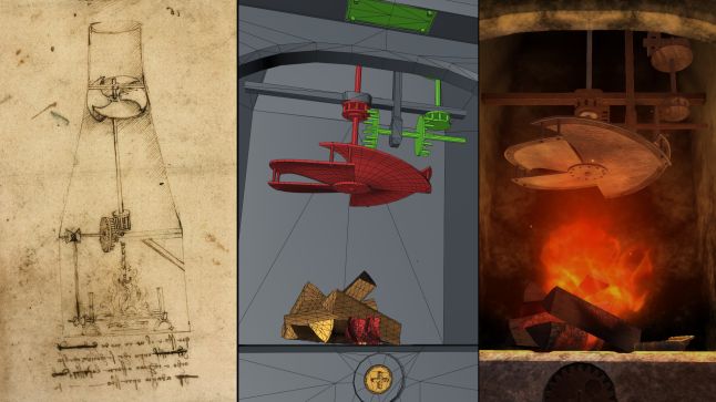 The key to making The House of da Vinci stand out was to look at his inventions in great detail. “We had to perfectly understand their function,” explained Pavelek. The team started with the original da Vinci sketches before translating them to simple models in 3D software apps. Each step of the way, the invention’s animations would be checked to ensure that they reacted naturally and appropriately to any scenario. A mixture of 3ds Max, Photoshop, and Unity was used to create the desired results.